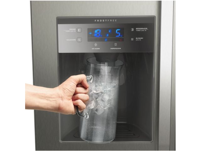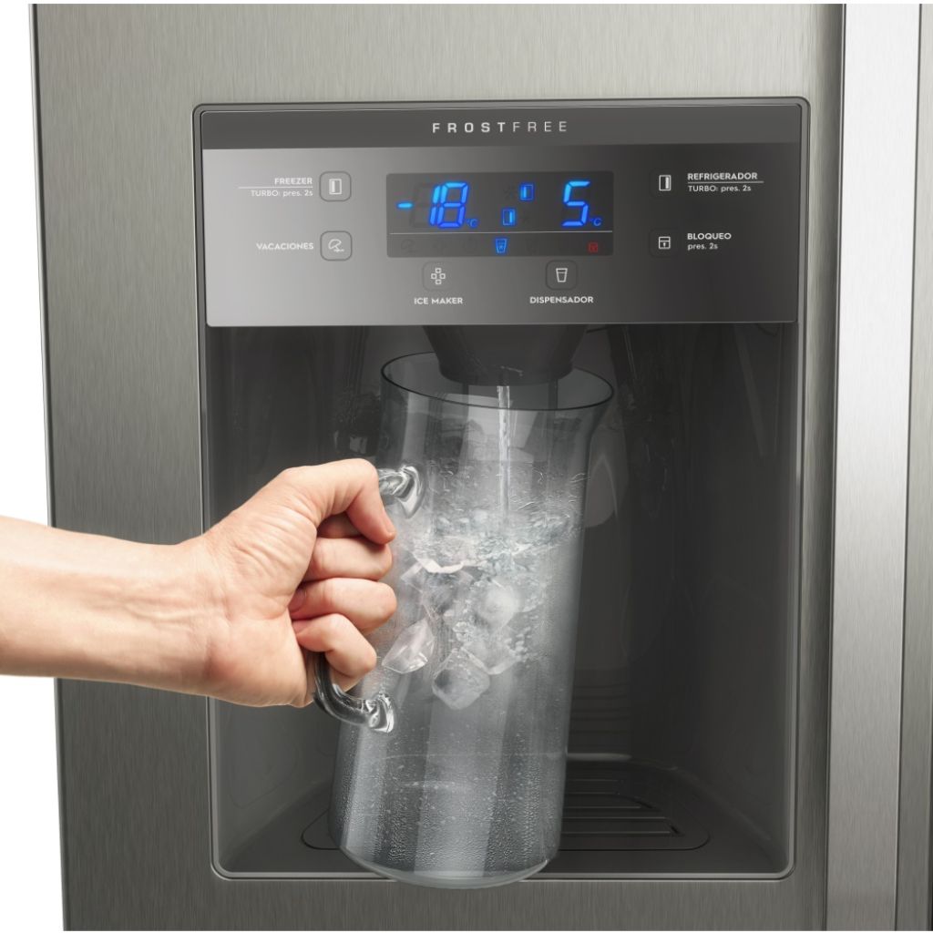 Viene con Panel Blue Touch y manija externa que aporta más modernidad y elegancia a su casa. Además, con el dispensador de agua y hielo vas a poder obtener agua filtrada, hielo en cubos o picado para cualquier ocasión, sin necesidad de abrir la puerta.